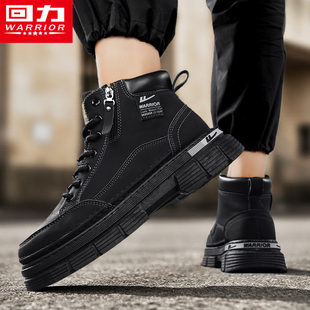 运动鞋 高帮休闲鞋 秋冬新款 子学生厚底男鞋 皮面鞋 征服鸿星尔克板鞋