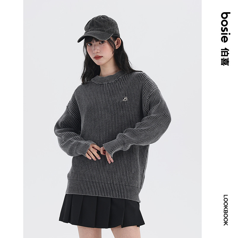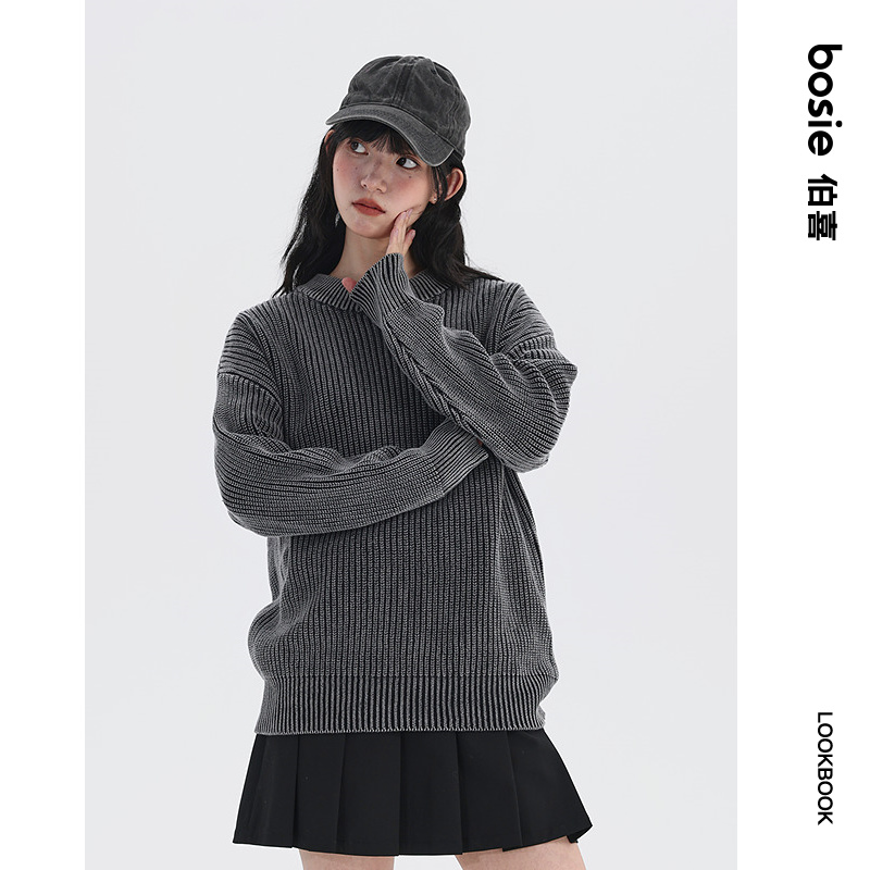中领情侣高领针织衫 三福2025秋冬季 打底衫 毛衣男圆领宽松毛衫 新款