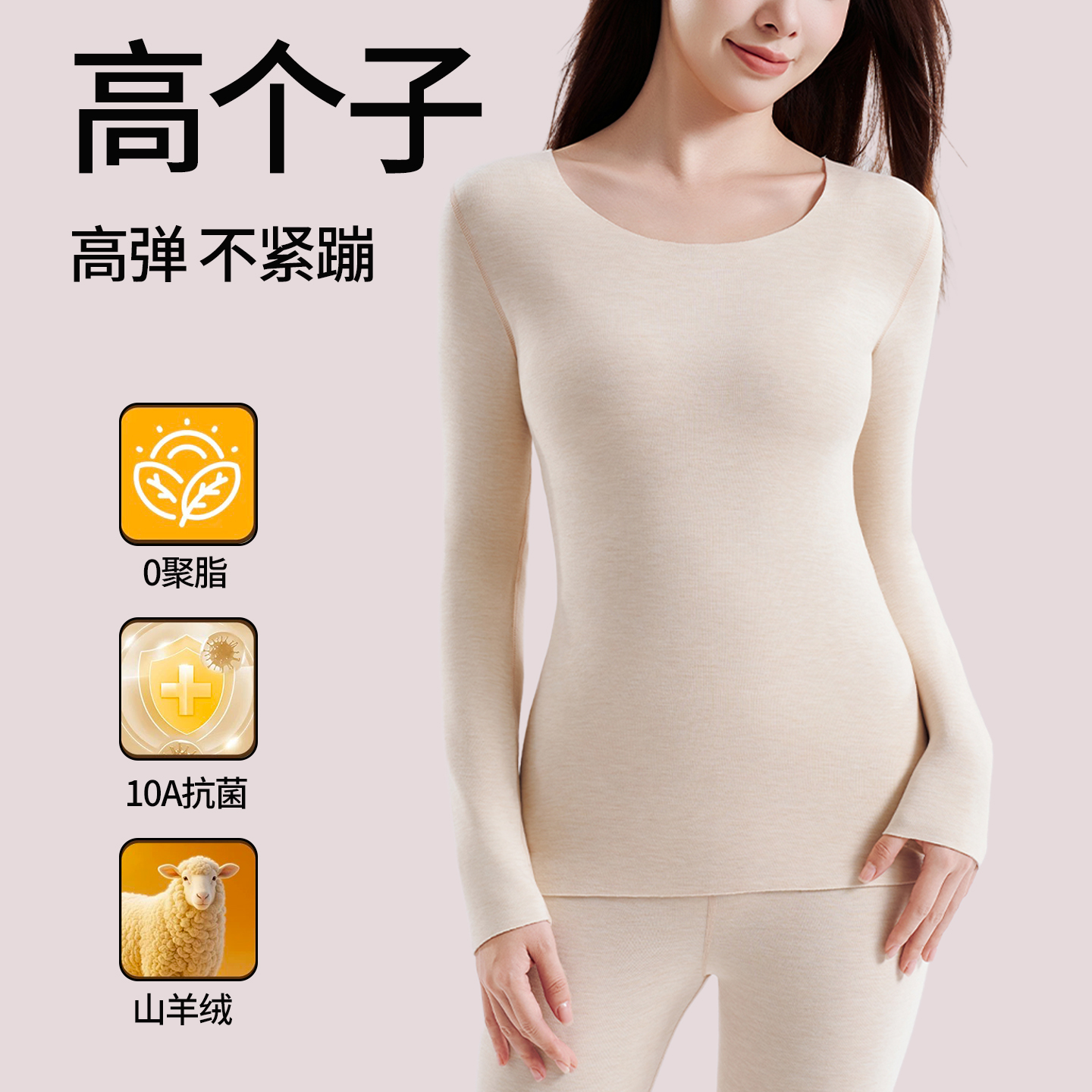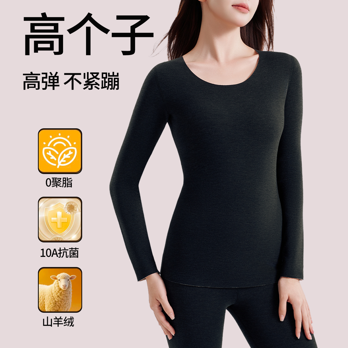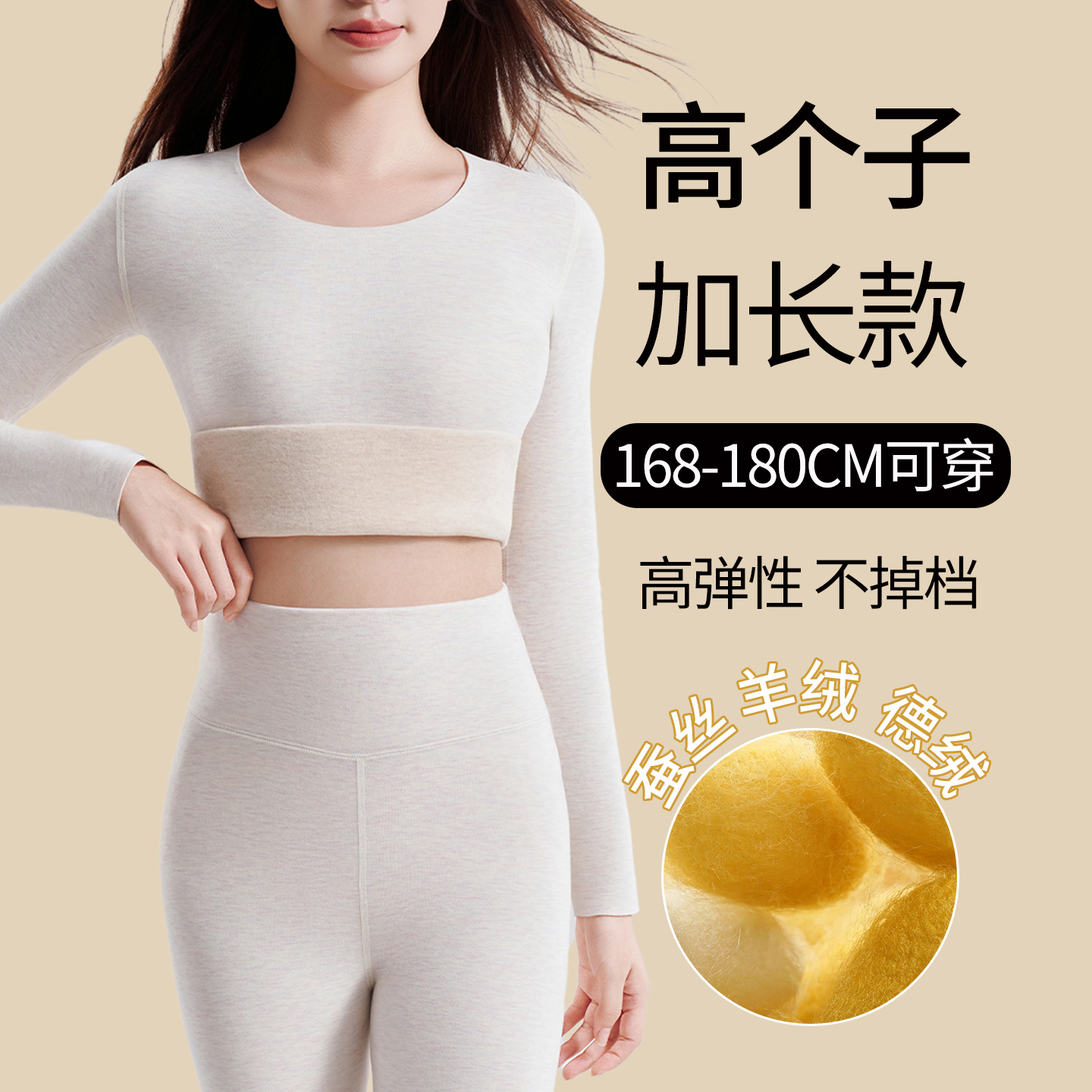 秋衣秋裤 蚕丝羊绒加绒加厚保暖棉裤 德绒高腰无痕套装 高个子加长版
