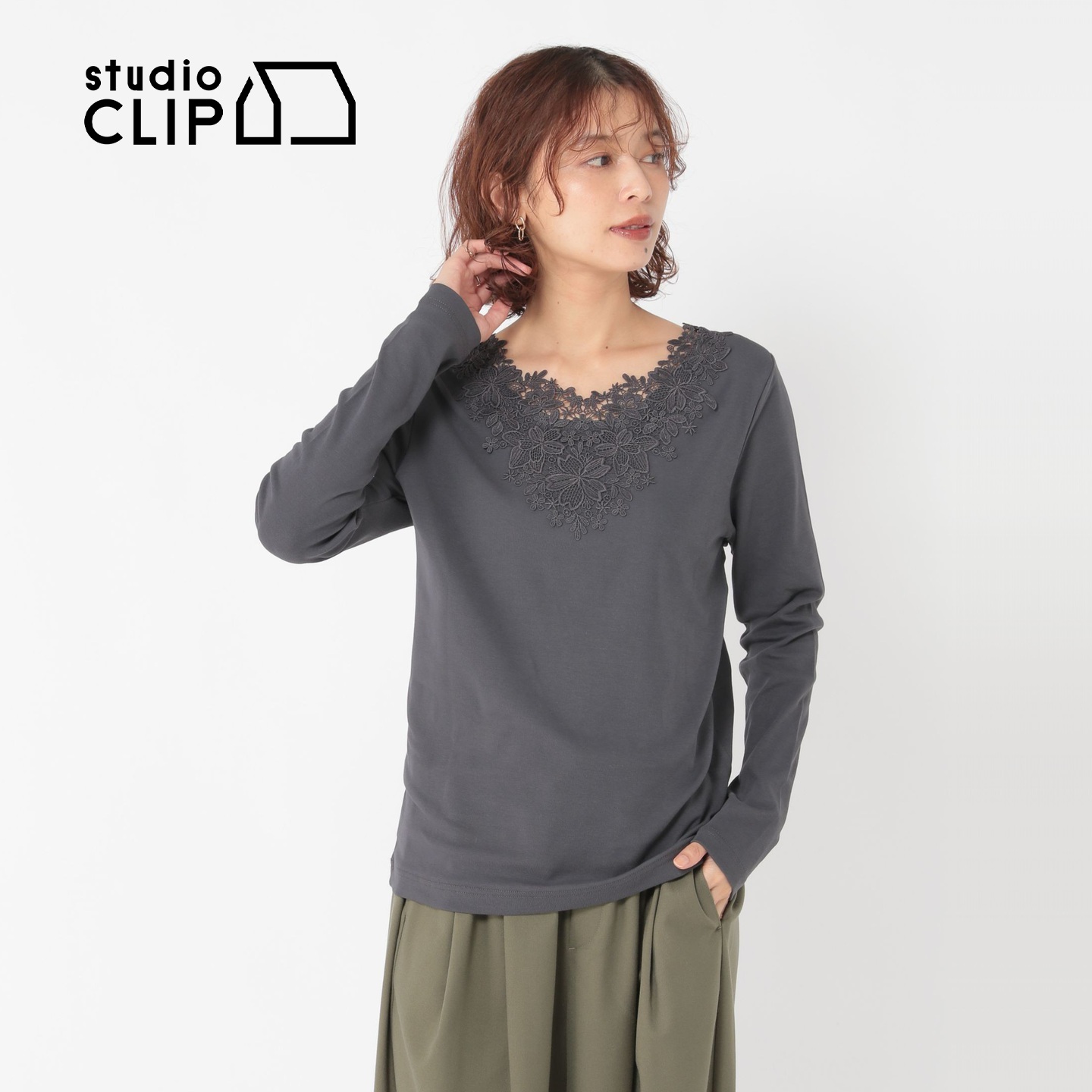 性感蕾丝花边含棉长袖 studio 新款 上衣女2025秋季 T恤588365 CLIP