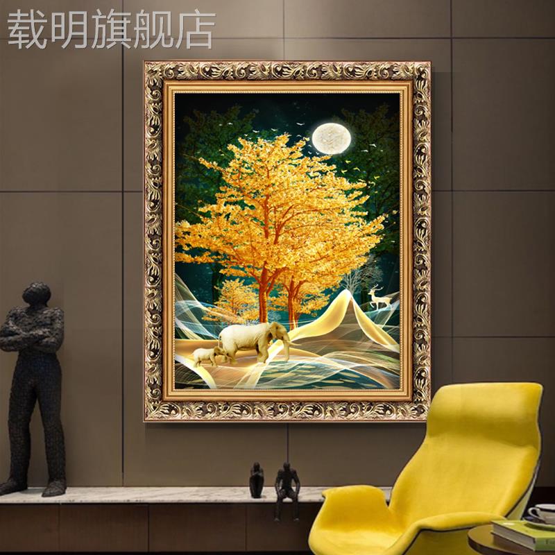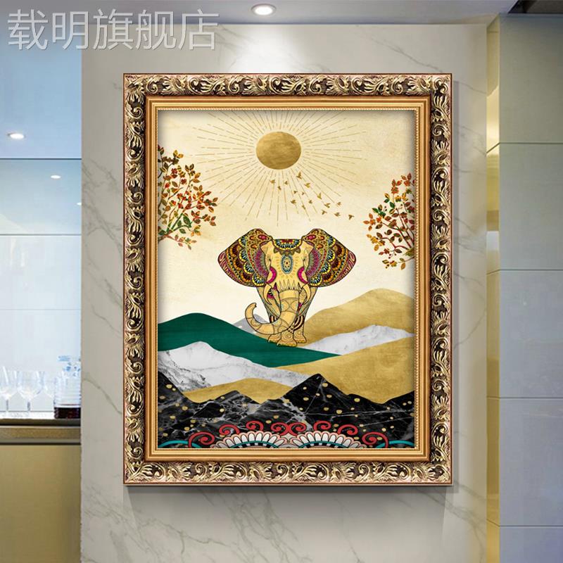 大尺寸壁画客厅美式 饰画大象竖版 油画挂画现代镇宅风水 玄关装 欧式