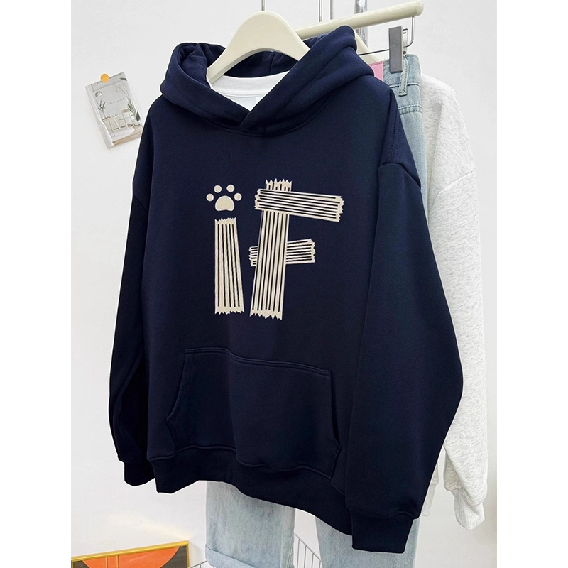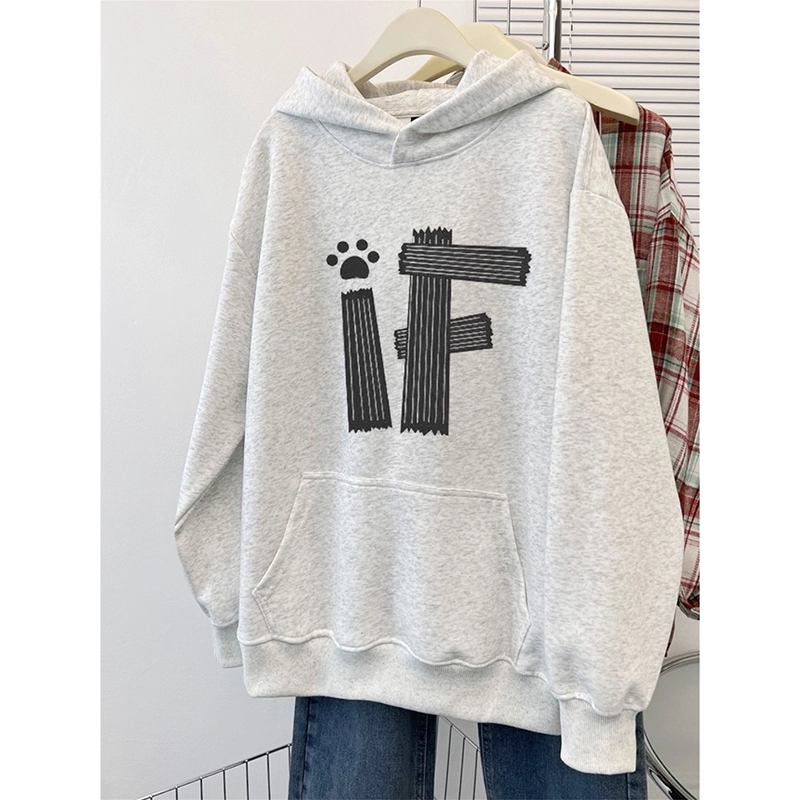 男女童加绒加厚黑色连帽卫衣中大童秋冬儿童宽松百搭休闲外套帽衫