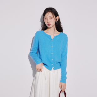商场同款 2025新款 森马针织开衫 春季 基础圆领上衣 女短款 森柔毛衫
