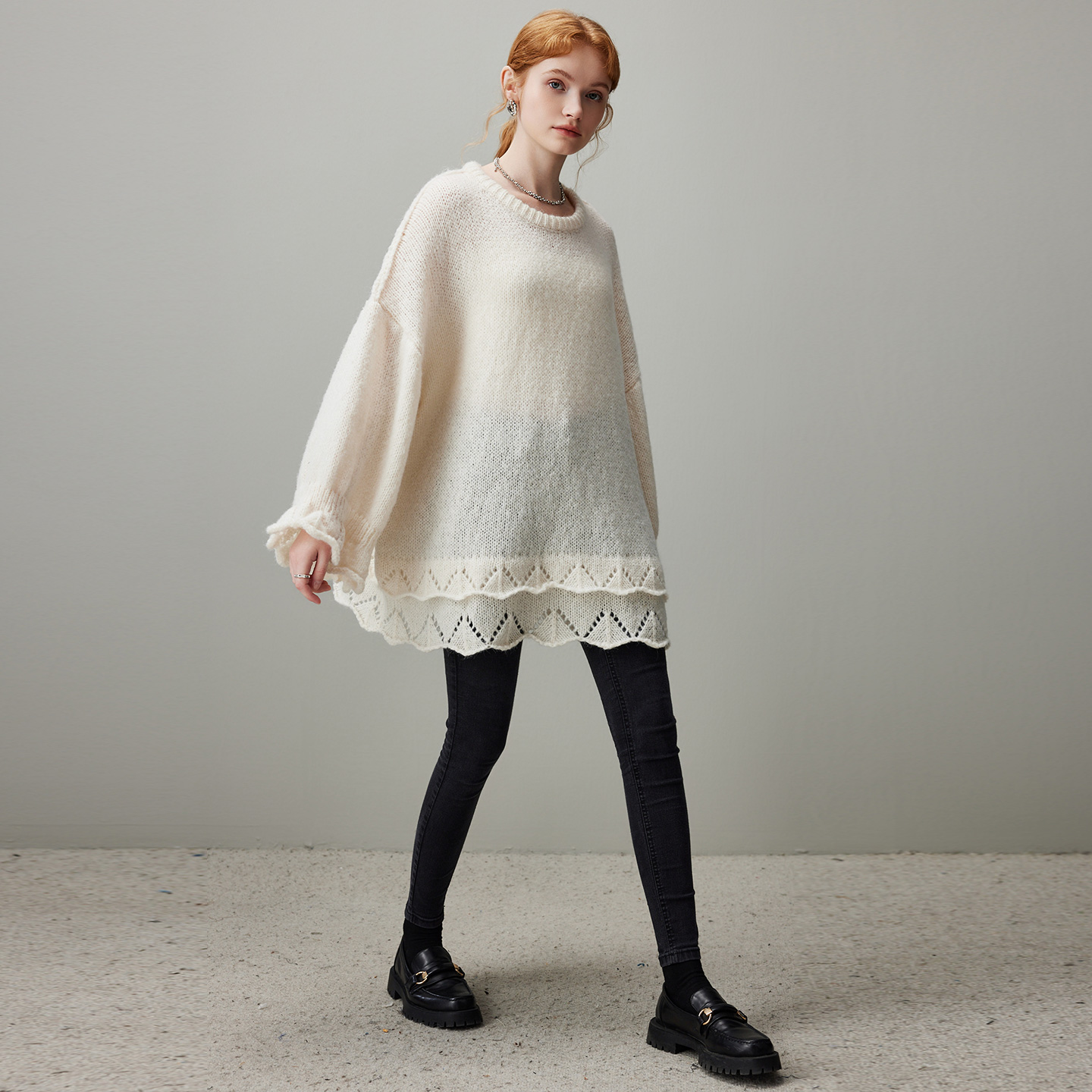 软糯绵羊毛辣妹针织衫 CRAWFISH纯欲一字肩毛衣修身 女 明星同款