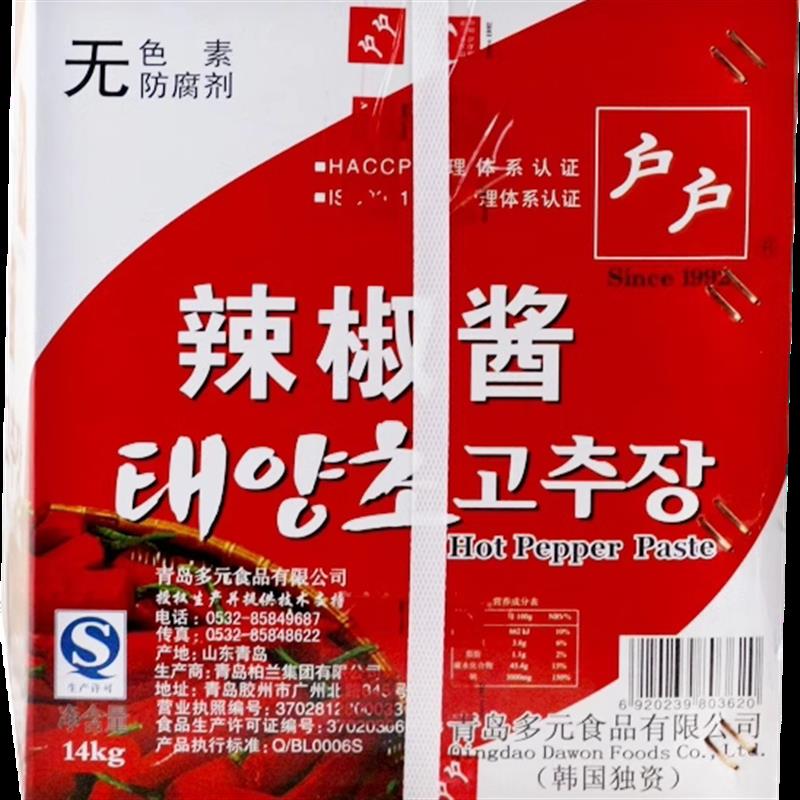 热卖 户户辣椒酱14kg大桶韩国辣酱甜辣酱拌饭酱年糕酱 店主推荐