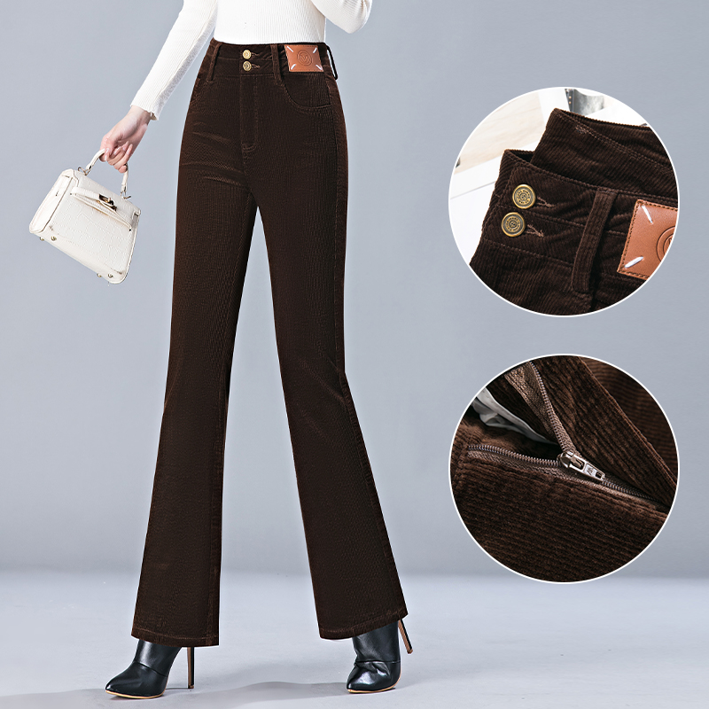 子 显瘦加绒加厚双排扣喇叭裤 高腰灯芯绒微喇裤 女秋冬2025宽松修身
