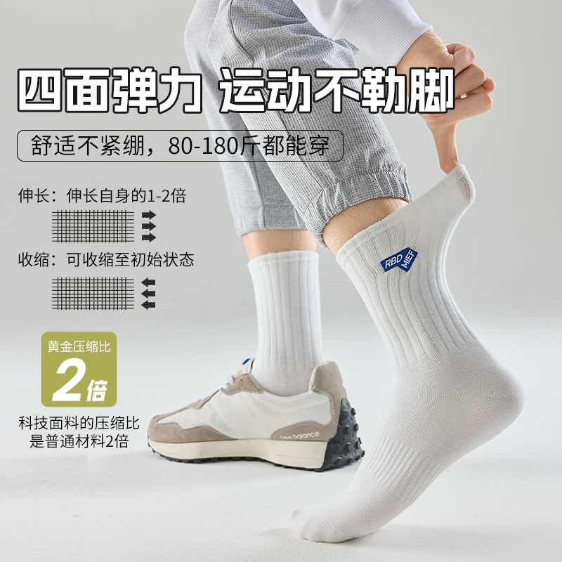 袜子男款 长袜 秋春纯棉中筒运动袜青少年100%新疆棉7a抗菌防臭厚款