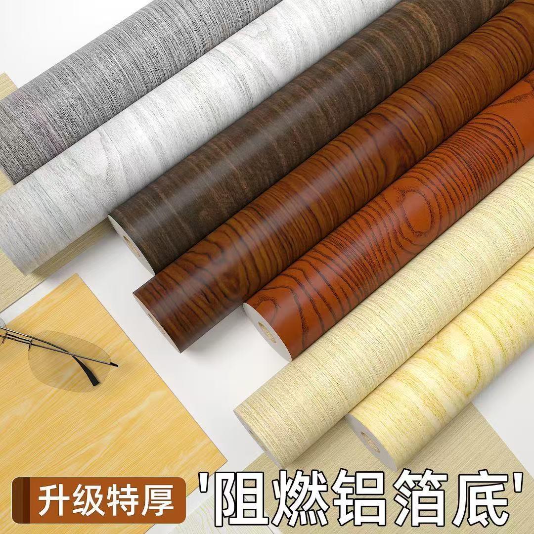 加厚防水木纹贴纸自粘pvc墙纸衣柜橱柜子桌面旧房门家具翻新壁纸