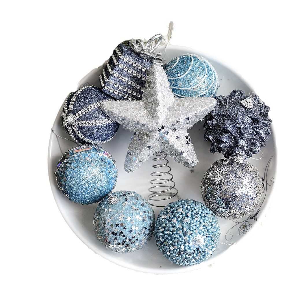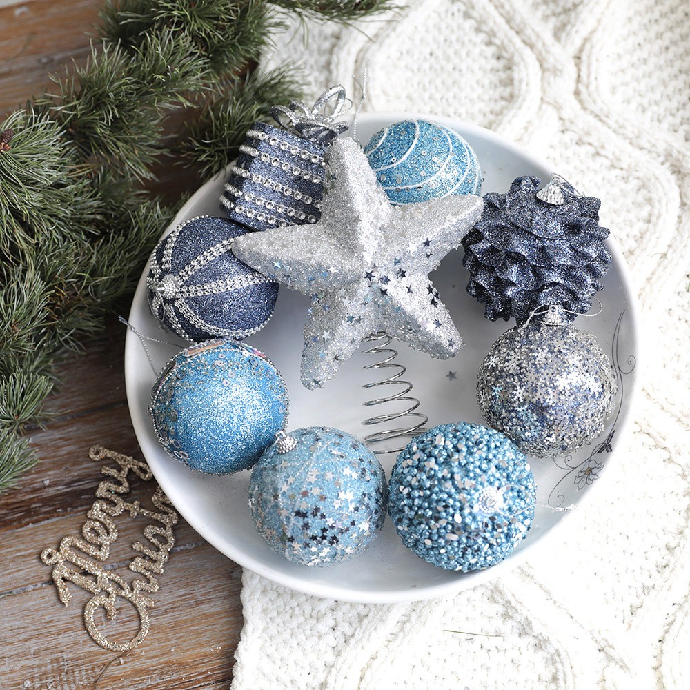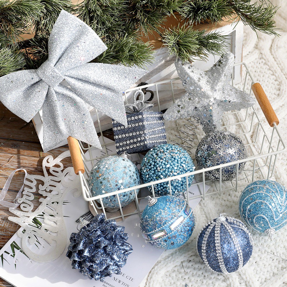 圣诞节装 饰品圣诞球天空蓝泡沫球亮片球圣诞树挂件蝴蝶结定制