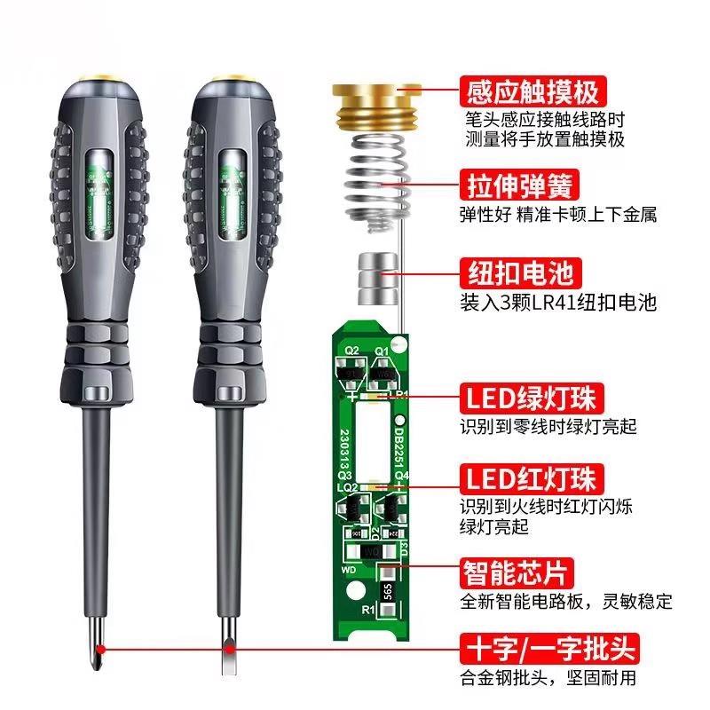 高扭力彩光测电笔螺丝刀多功能智能电笔电工专用测断线试电笔感应