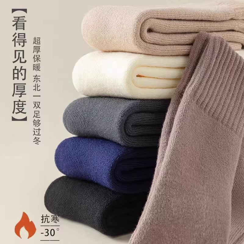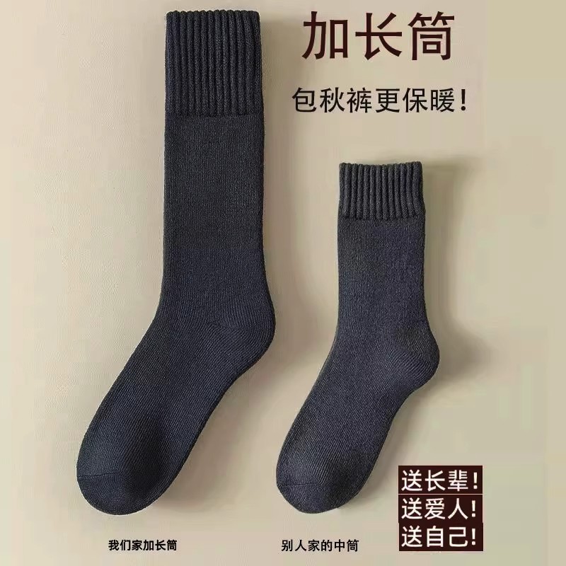 加长加厚羊绒袜男款 秋冬加绒保暖长筒袜羊毛东北方抗寒高筒长袜子