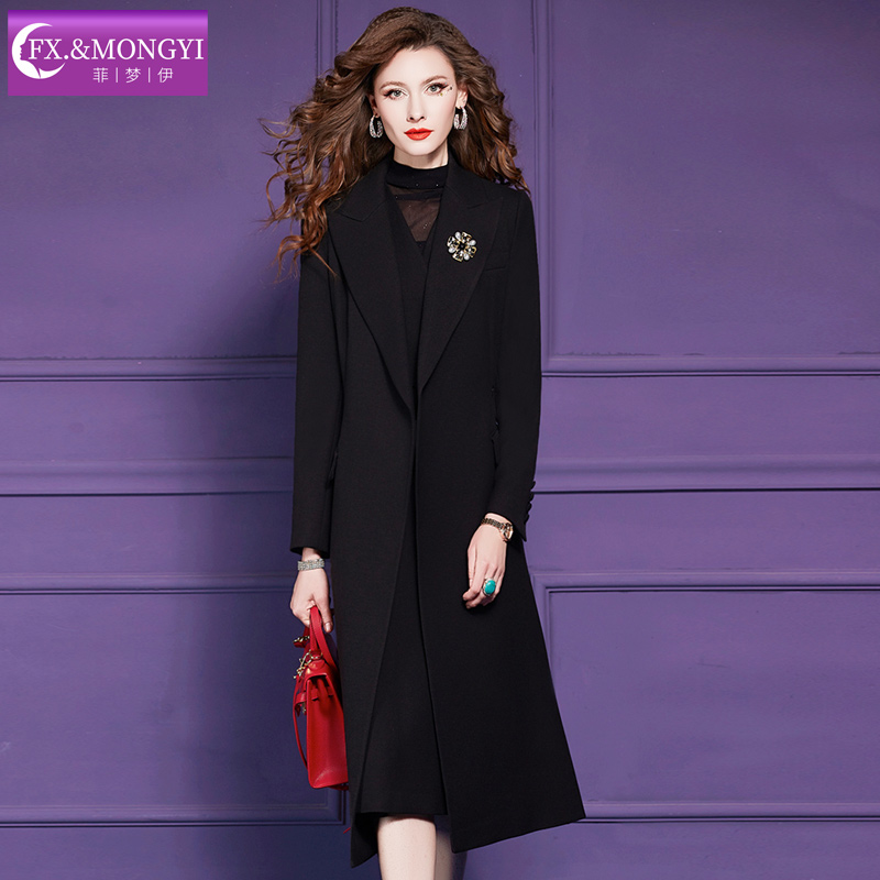 韩版 长款 呢子加厚风衣外套 2025春秋季 V37黑色高级感毛呢大衣男款