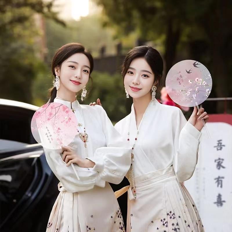 高颜值夏天古风团扇PVC扇子古装 汉服旗袍拍照中国风舞蹈跳舞喜扇
