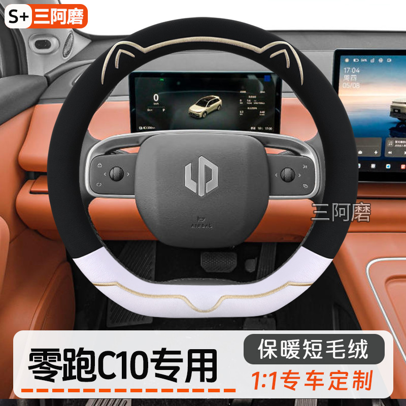 零跑C10方向盘套冬季 保暖短毛绒可爱金边猫耳朵汽车把套女2026款