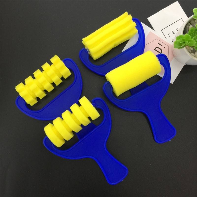 4件套海绵滚轮滚筒幼儿园益智绘画美术涂鸦颜料画早教工具海绵刷