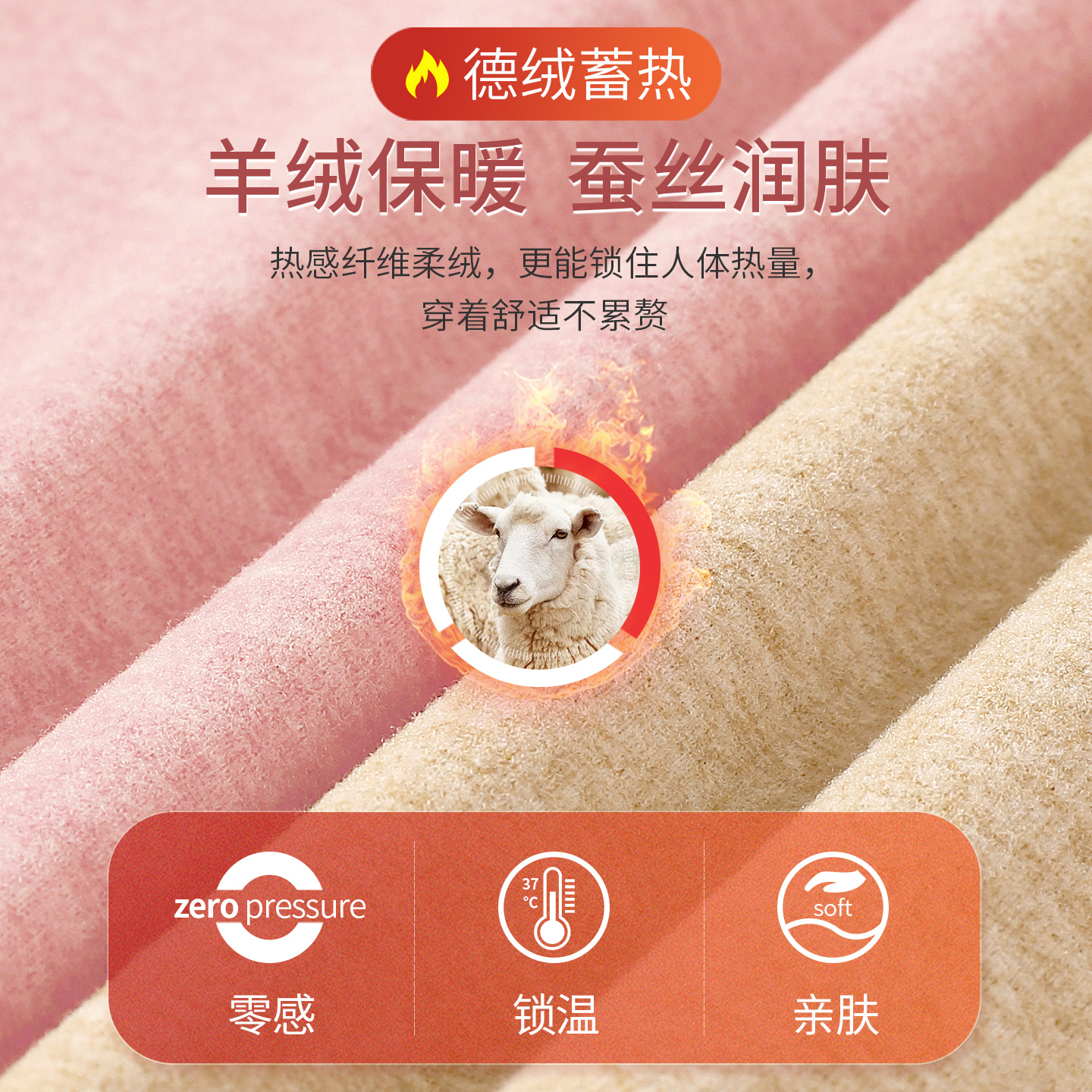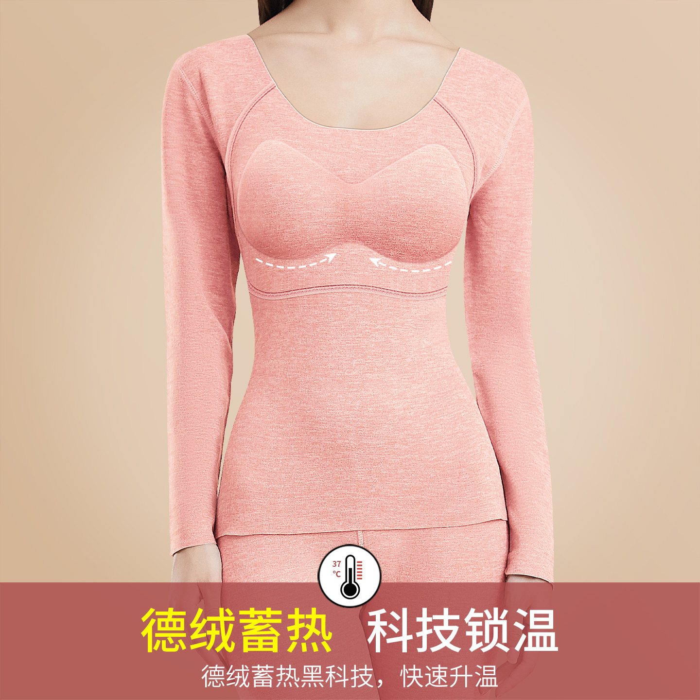 无痕德绒保暖内衣女士带胸垫羊绒蚕丝加绒加厚打底内衣2025新款 冬