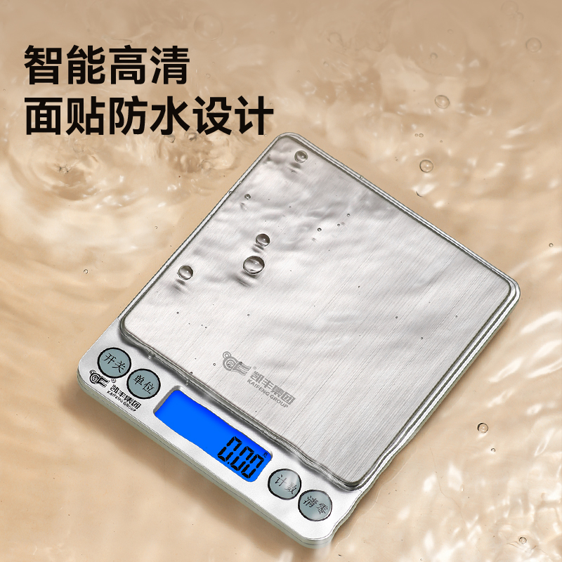 凯丰小型电子秤高精准度不锈钢厨房秤家用称克重烘焙食品中药小秤