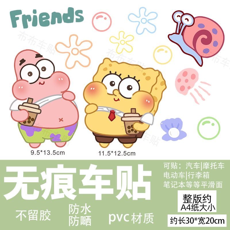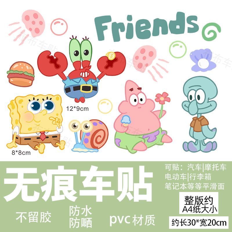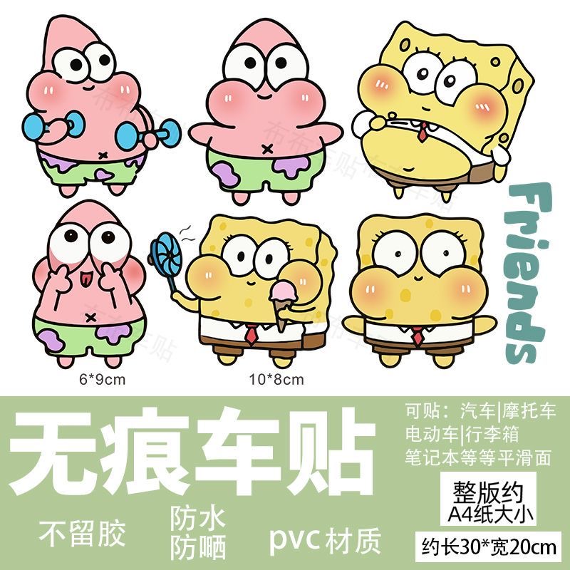 海绵宝宝派大星电动车贴纸卡通动漫划痕遮挡汽车身装 饰摩托车贴画