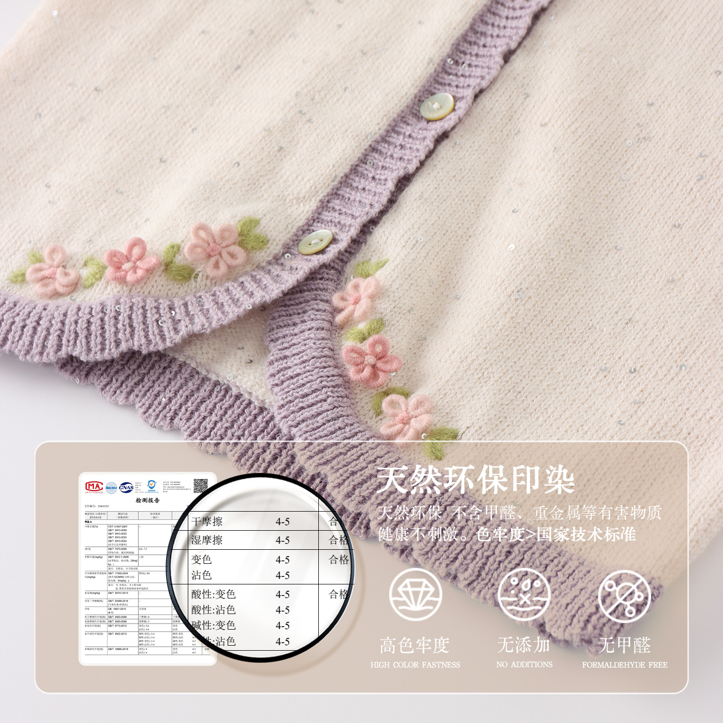 宽松休闲百搭长袖 新款 毛衣外套上衣 女秋季 花概念V领纽扣针织开衫