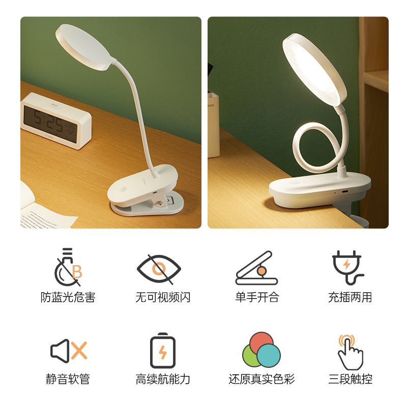公牛充电台灯护眼学习专用大学生宿舍书架夹式 夹子床头书桌阅读灯