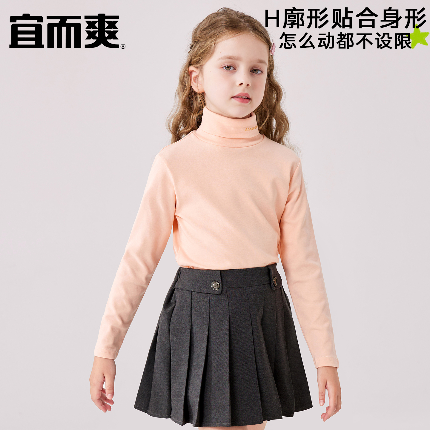 宜而爽纯棉儿童长袖 宝宝保暖秋衣 T恤中大童男童女孩半高领打底衫