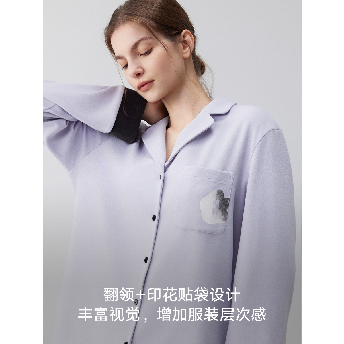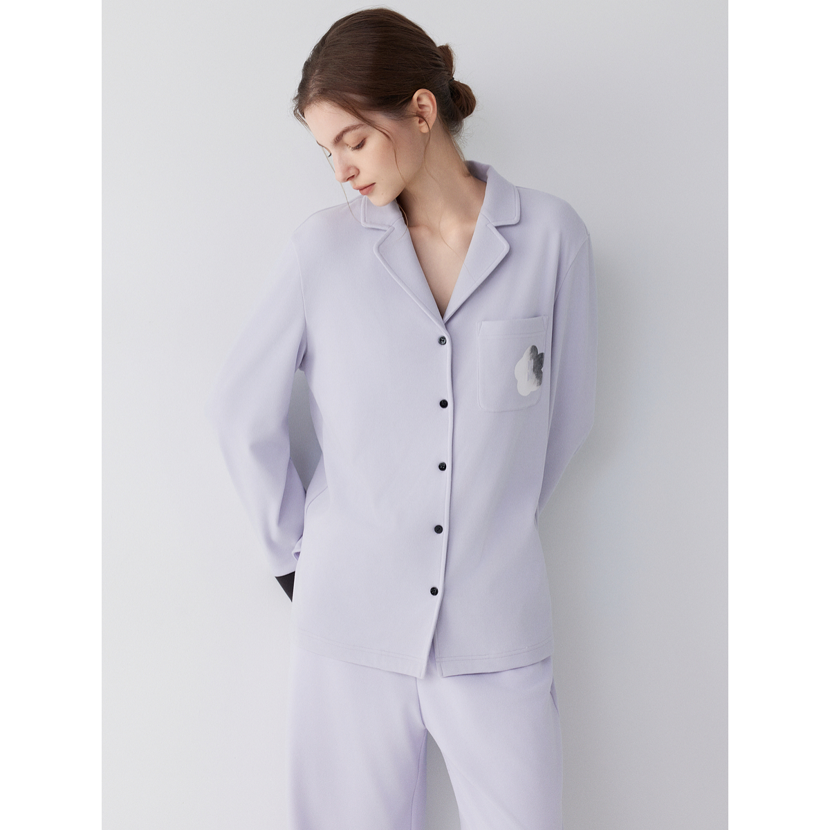 淡紫色家居服新款 ELLE德绒睡衣女秋季 套装 长裤 可外穿薄绒保暖长袖