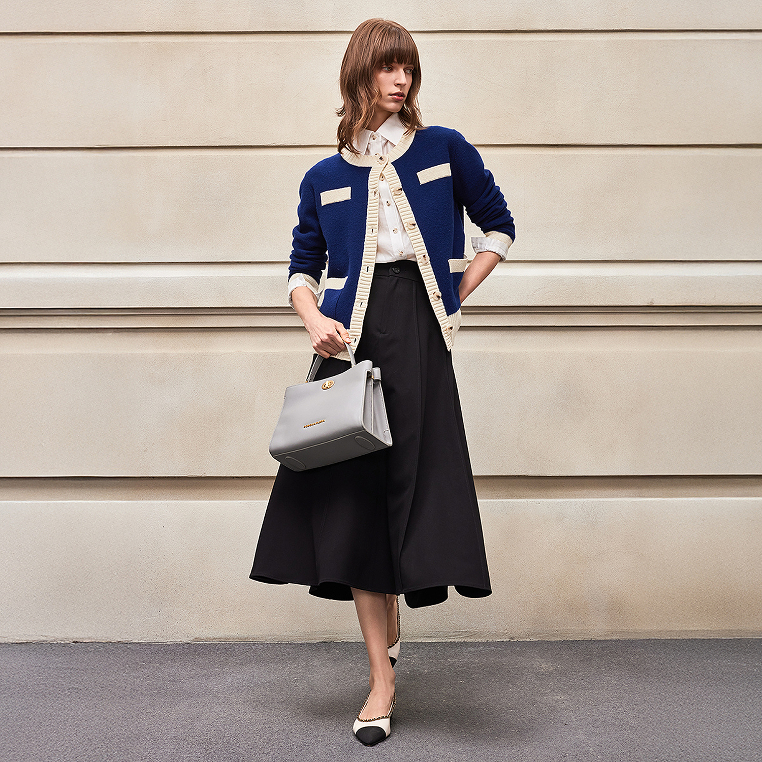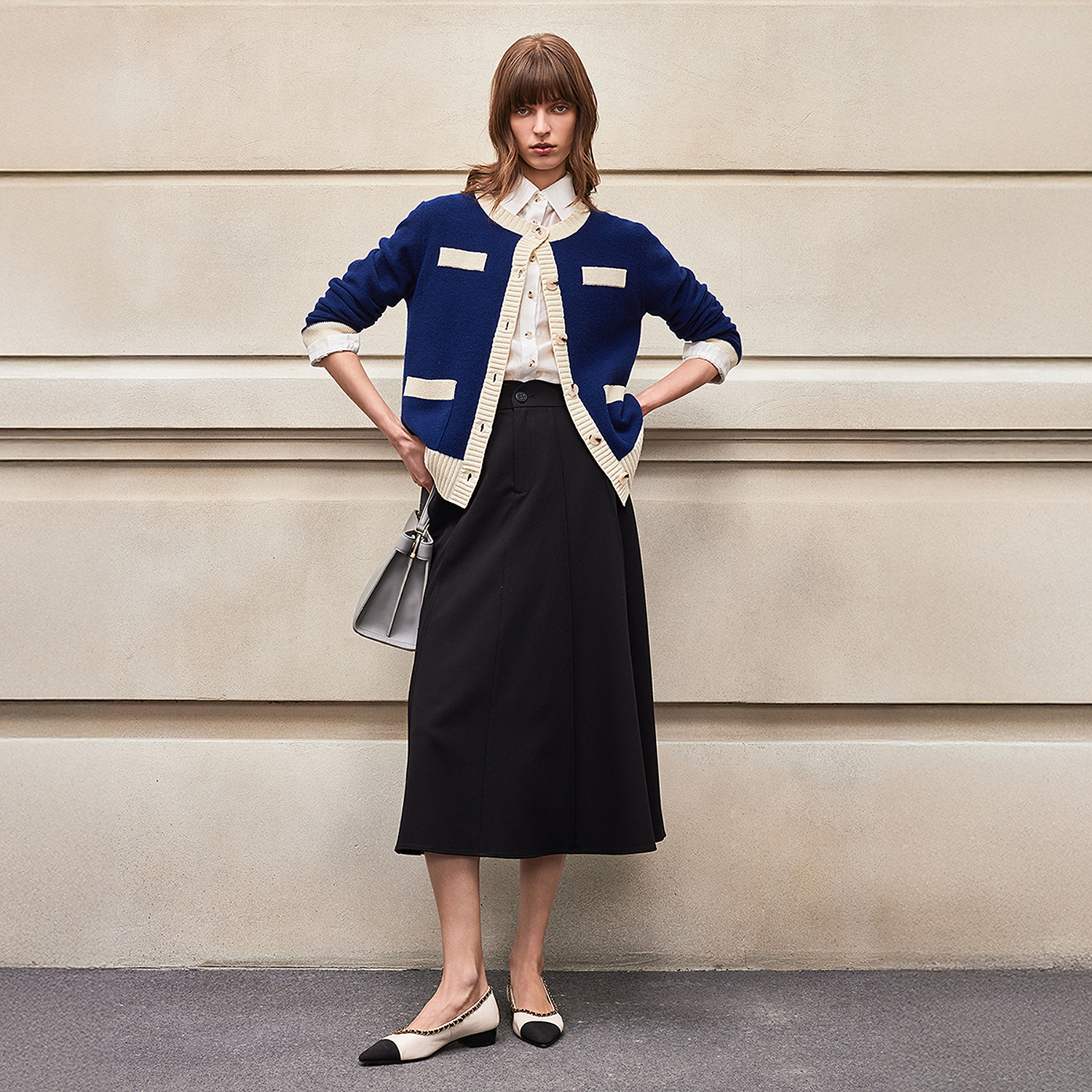 针织衫 条纹短袖 长袖 开衫 毛衣外套 RARN2025秋装 两件套圆领修身 新款