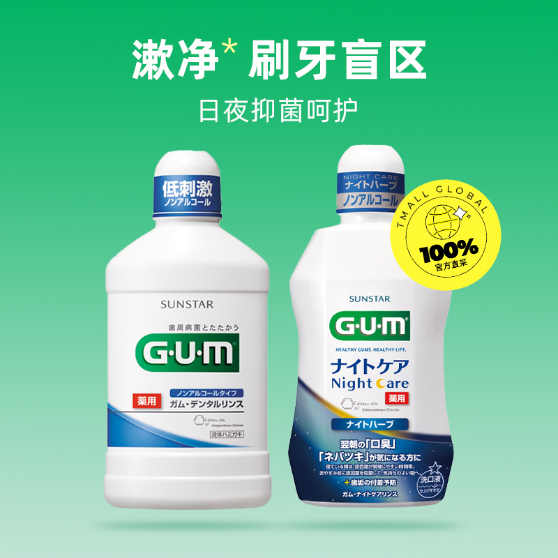 GUM康齿家漱口水2瓶日夜用持久留香清新口气口腔牙龈护理 自营