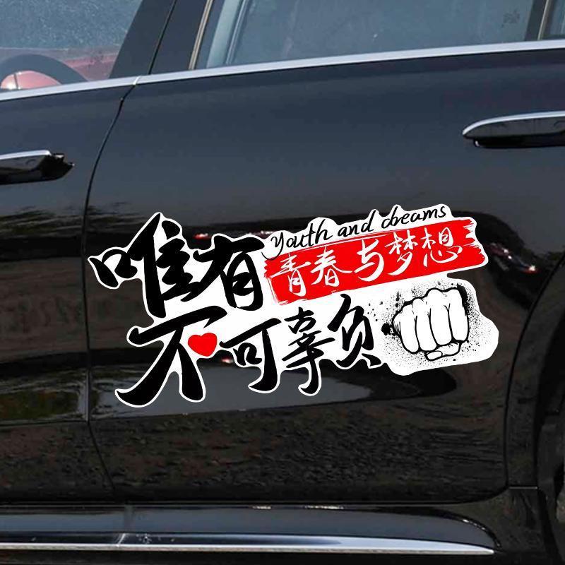 汽车贴纸网红创意个性 饰贴画 文字车门霸气划痕遮挡摩托电动装