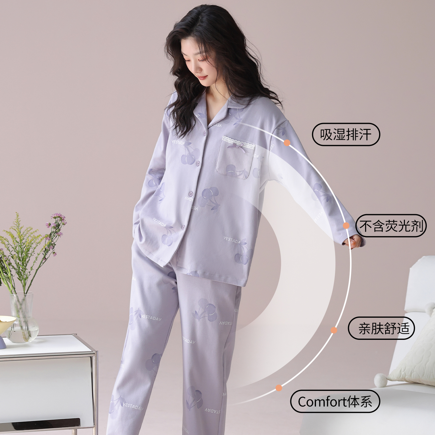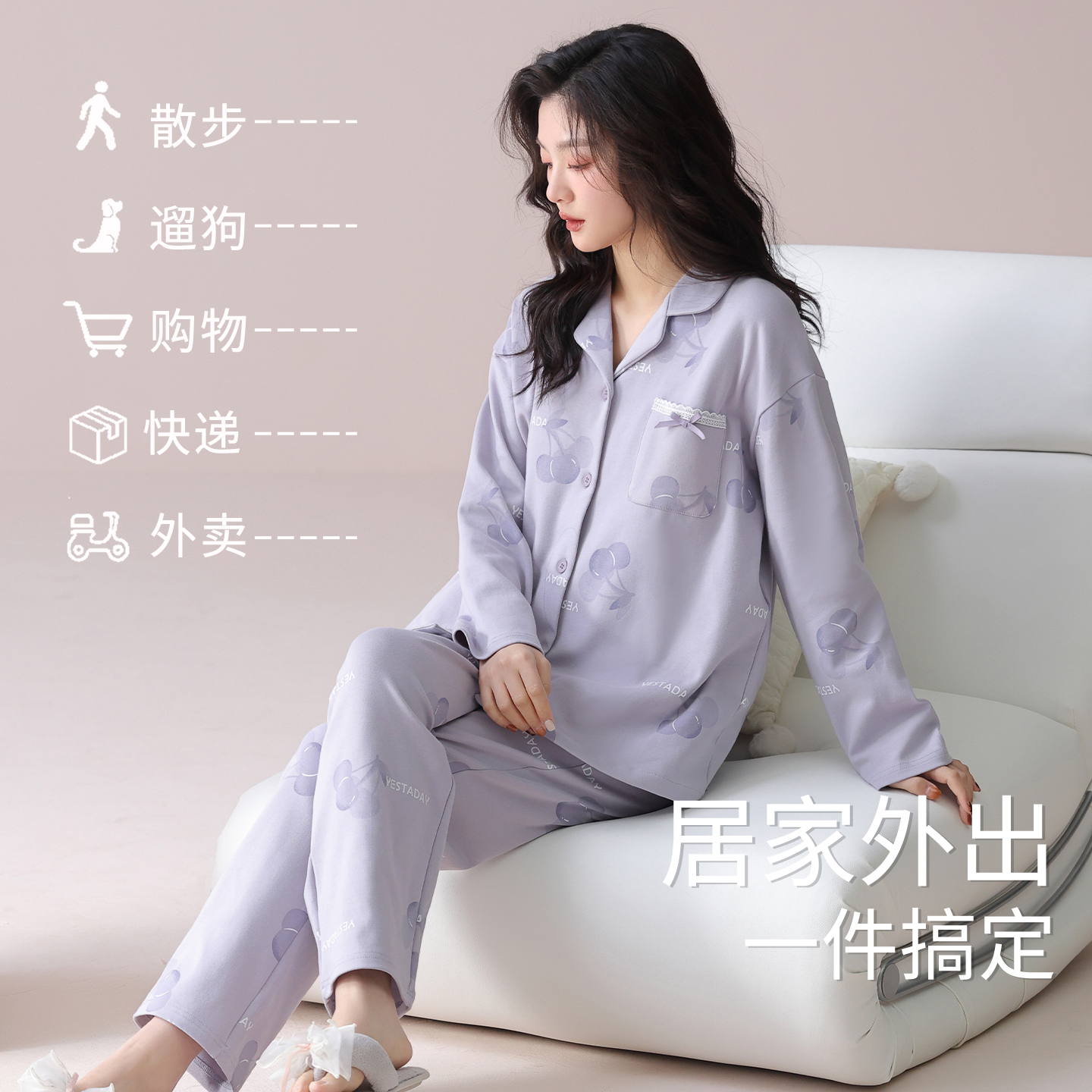 秋季 可外穿休闲宽松家居服套装 新款 长裤 长袖 都市丽人纯棉睡衣女款