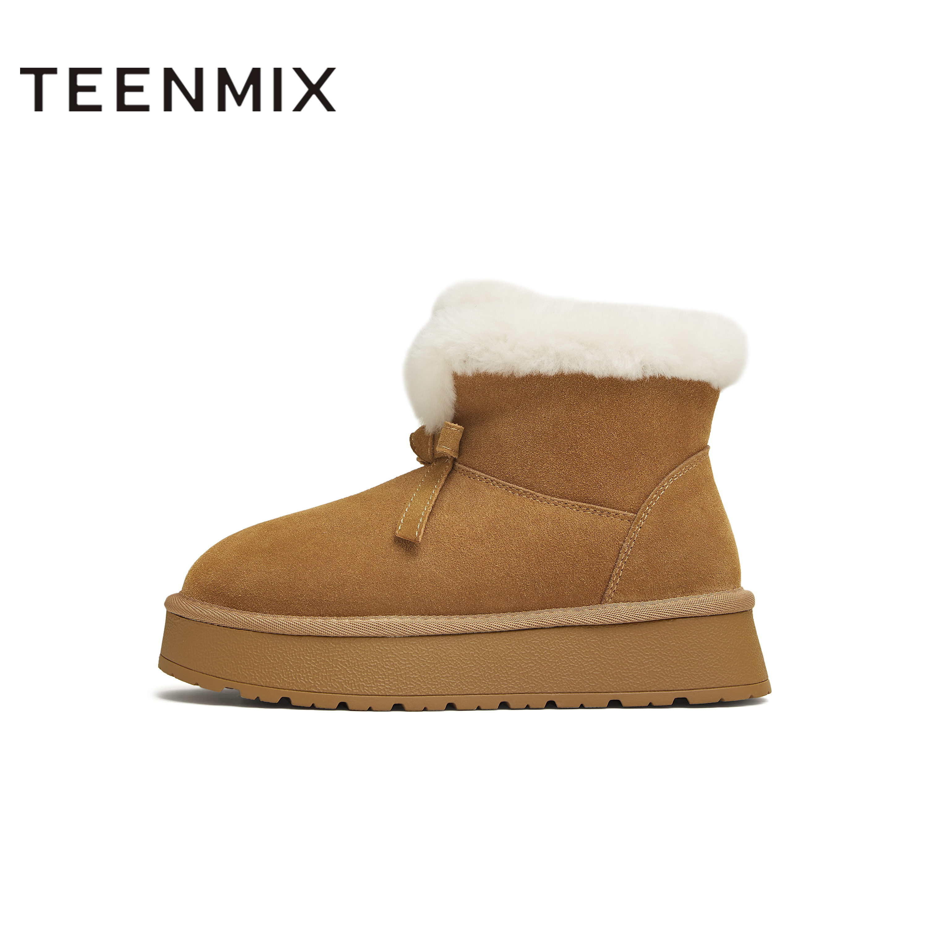 天美意蝴蝶结加绒保暖雪地靴棉鞋 KXD61DD5 女厚底短靴子2025冬新款