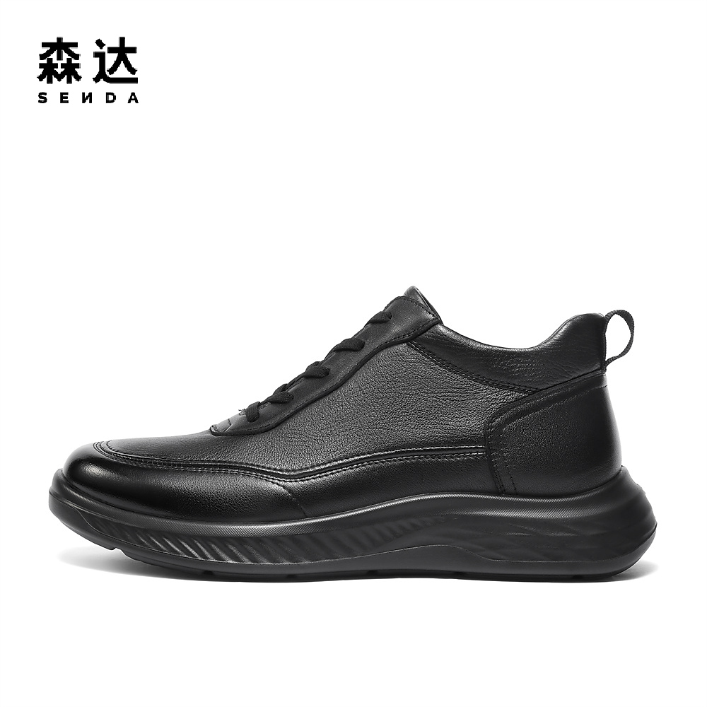 森达高帮运动鞋 舒适羊皮皮靴休闲短靴1ZL01DD5 男2025冬新商场同款