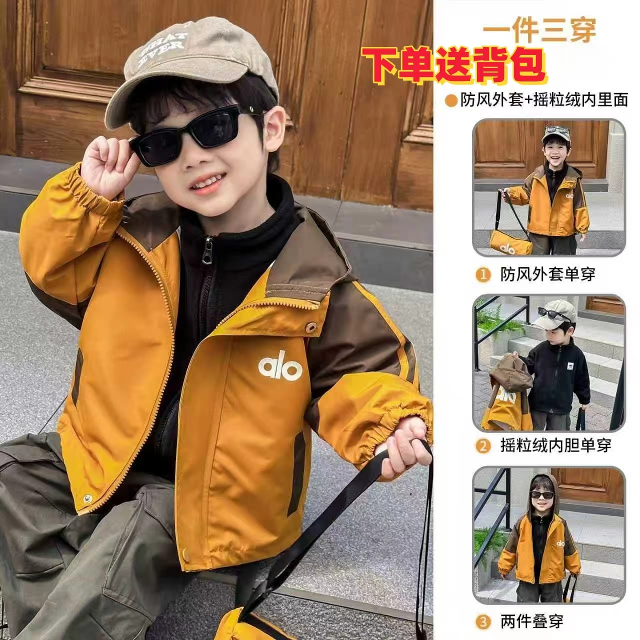 男童外套2025新款 潮 酷帅气防水防风衣三合一儿童冲锋衣男孩春秋装