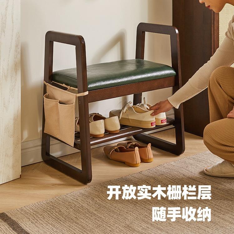 胡桃木色适老换鞋 凳高老人家具产品适老化改造 凳老年人带扶手穿鞋