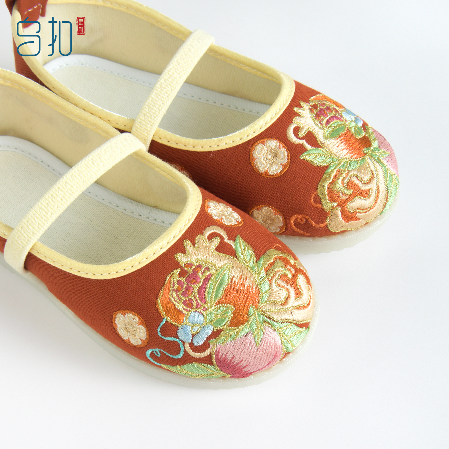 搭配鞋 乌扣.红月 新中式 儿童中国风古装 子 女童汉服绣花鞋