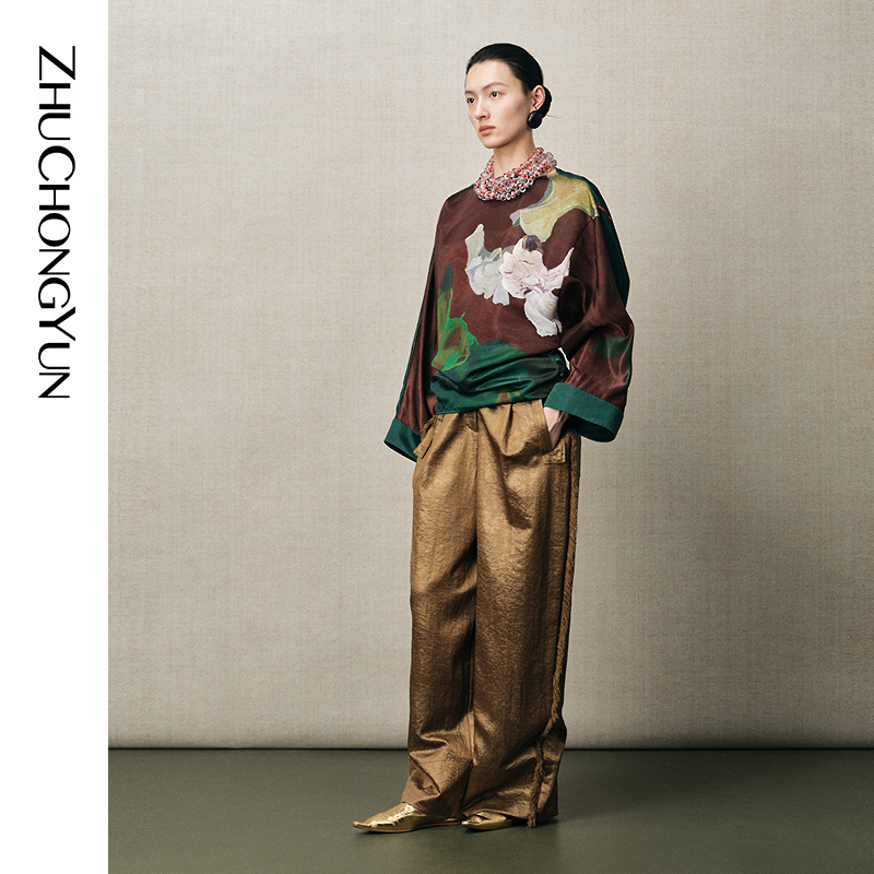 花稿宽袖 东方中式 ZHUCHONGYUN2025冬新款 圆领上衣 釉冬翠影