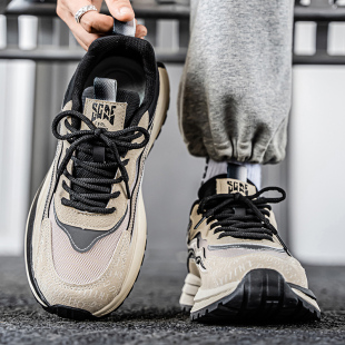 莆田男鞋 秋冬透气网面防臭复古百搭运动休闲跑步厚底增高老爹潮鞋