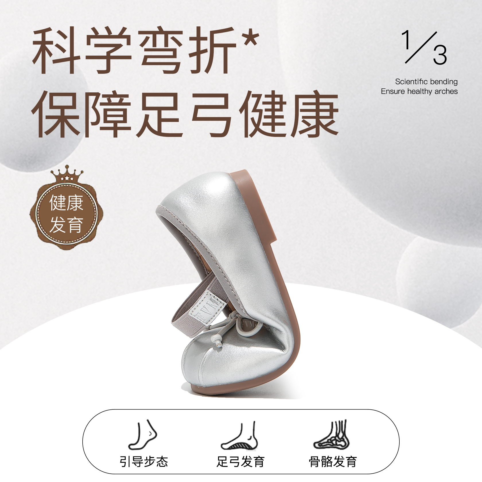 洋气女孩软底单鞋 FVM女童鞋 新款 2025春秋季 子儿童公主银色小皮鞋