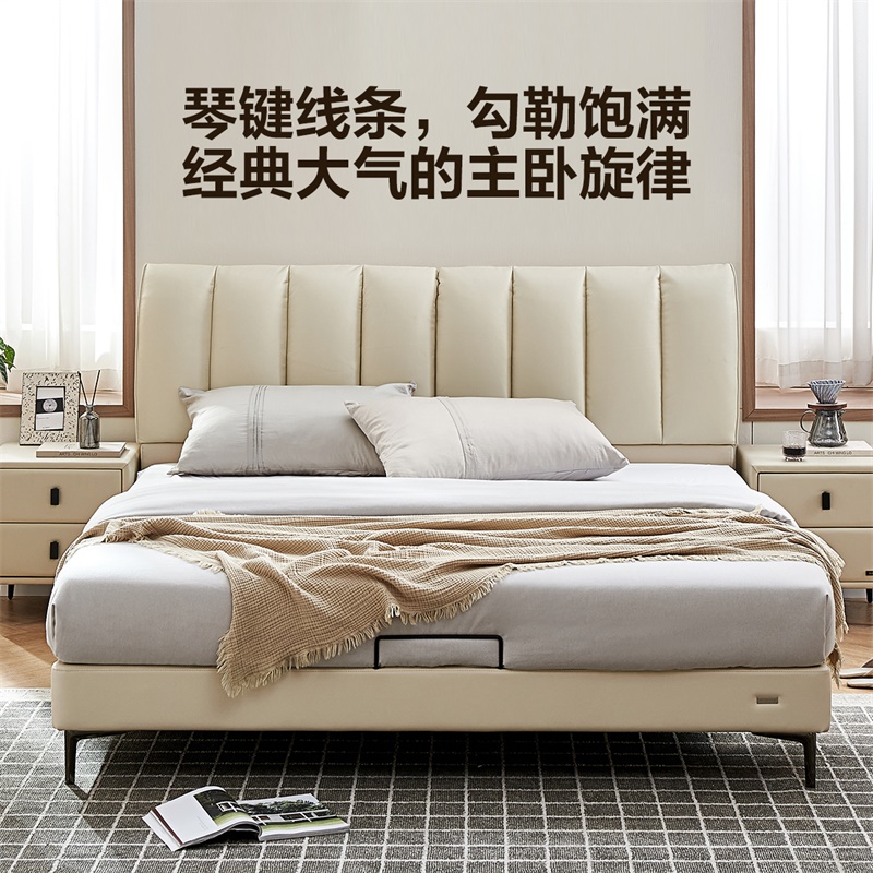 全友家居主卧室1米8双人软包大床2025新款 钢琴键1.5m单人真皮床