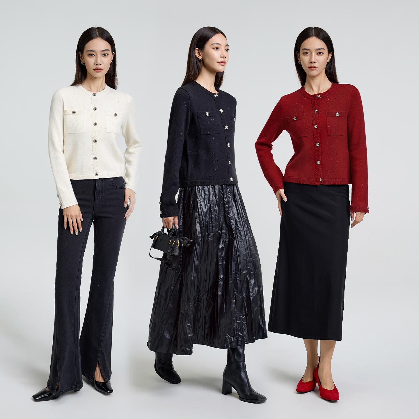百搭显瘦气质淑女针织衫 纯色新款 上衣女 2025冬季 恩瑞妮专柜同款