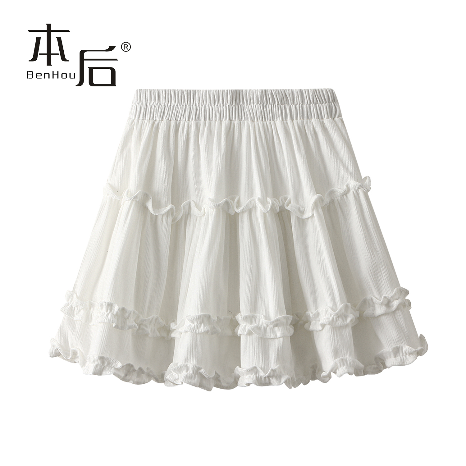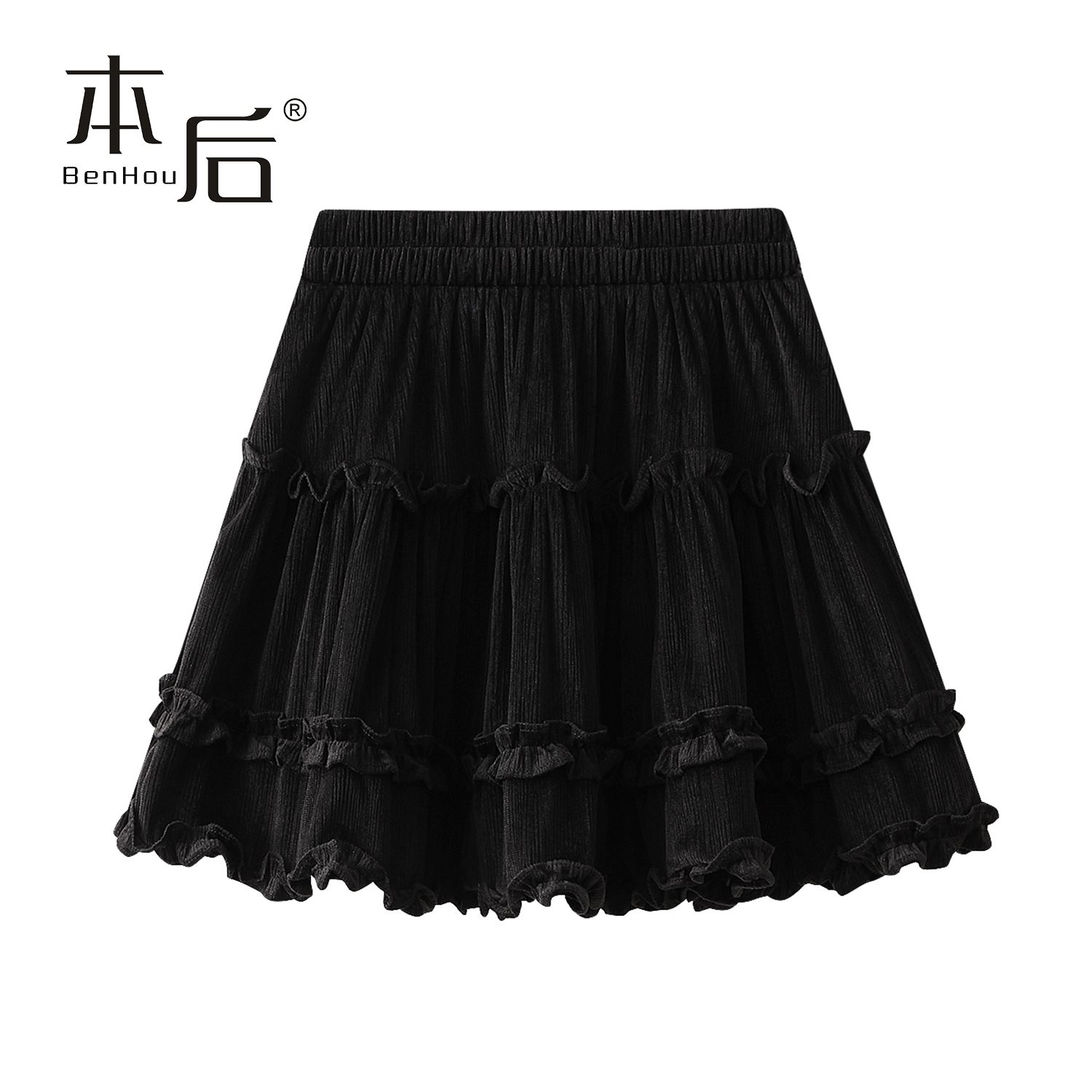 蓬蓬短裙 高腰遮胯甜辣法式 8236 复古咖色木耳边蛋糕半身裙女秋季