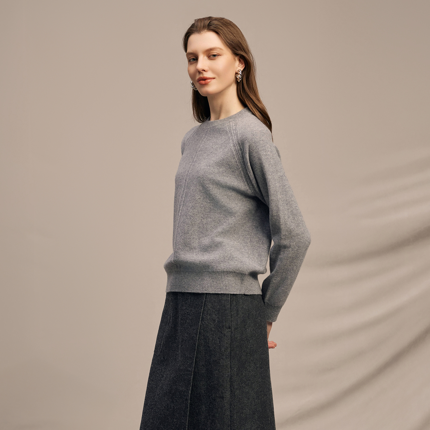 毛衣上衣25年秋冬新款 鹿王100%山羊绒衫 女圆领纯色百搭简约针织衫