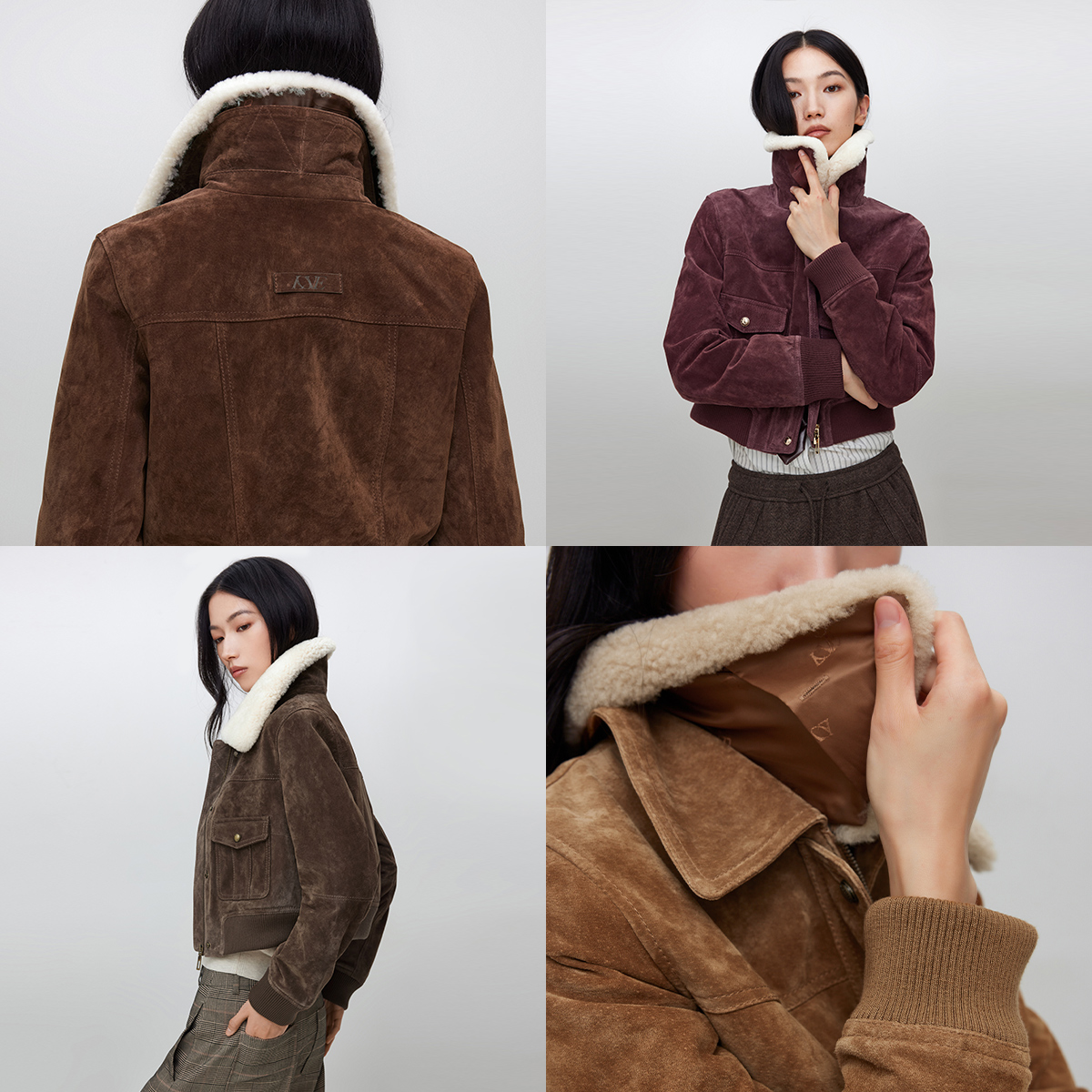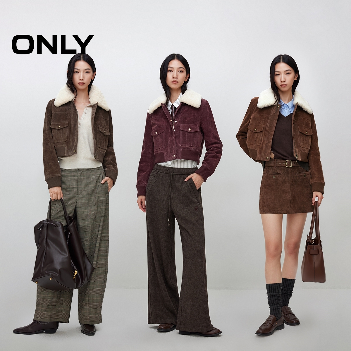 正肩可拆卸毛领设计长袖 潮酷风短款 皮衣外套女 新款 ONLY2025秋季