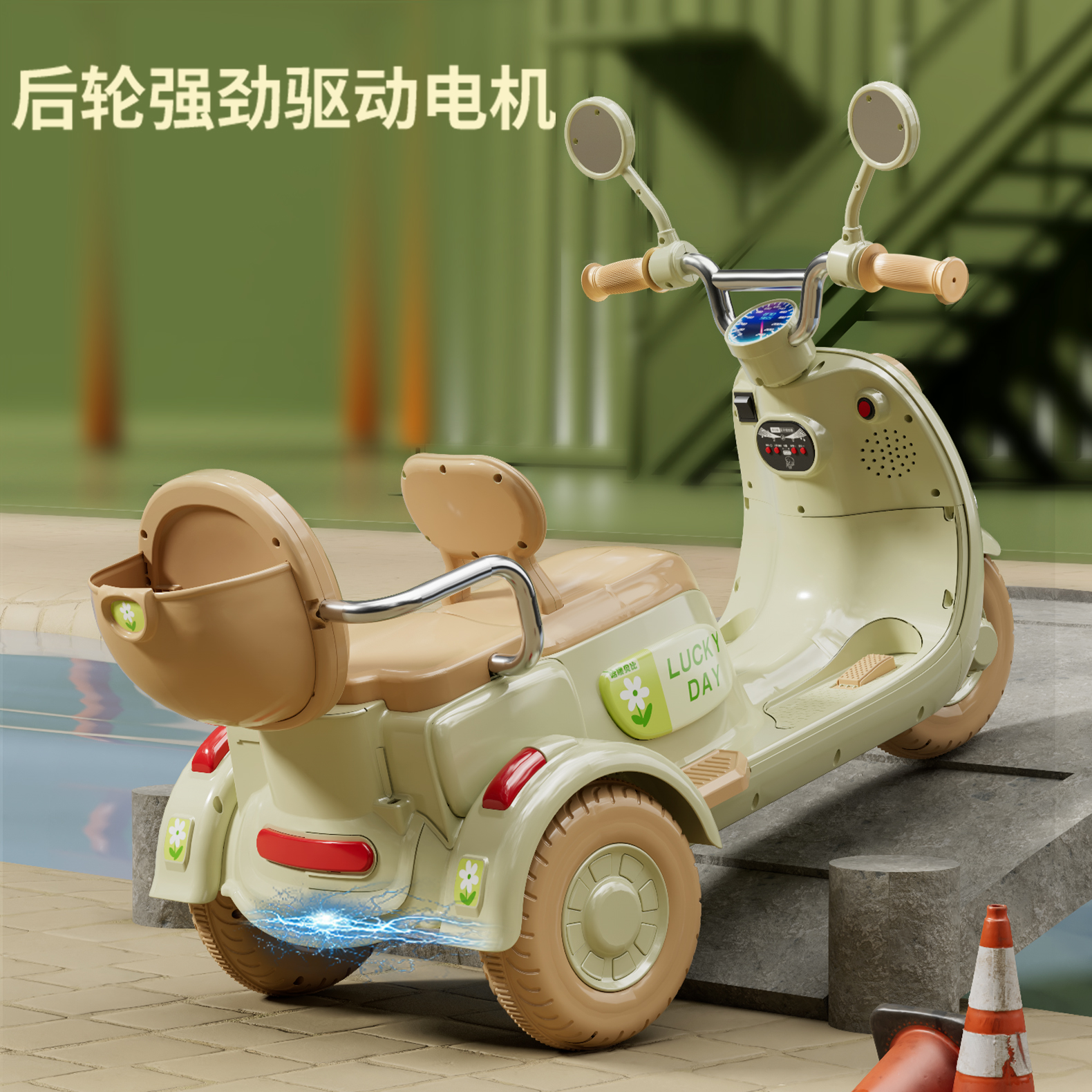 儿童电动摩托车三轮车2025新款 双人可坐宝宝三轮车遥控充电玩具车