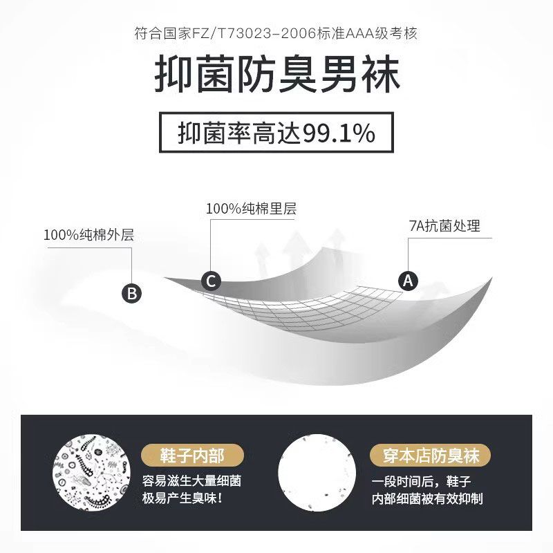 袜子男纯棉春秋款 中筒袜 短袜7a抗菌灰色无骨防臭脚吸汗青少年男士