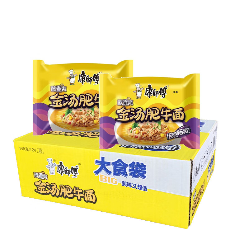 康师傅方便面BIG大食袋24袋整箱批发香辣酸辣红烧牛肉面泡面速食