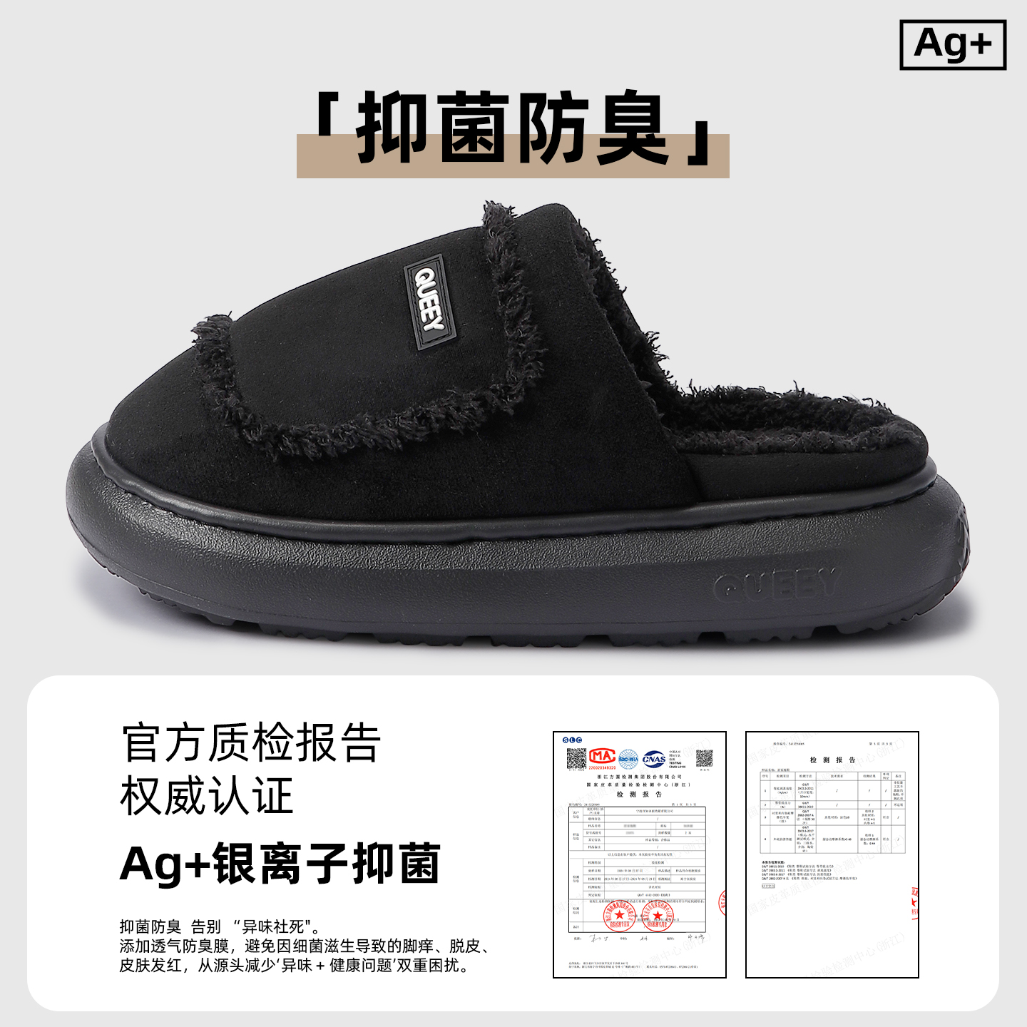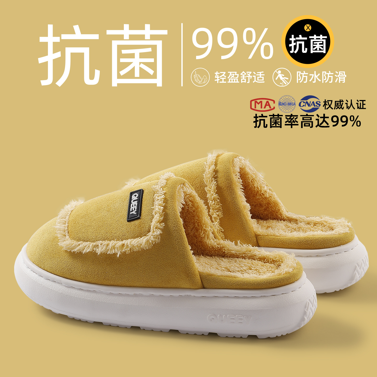 抑菌防臭棉拖鞋 女冬家居防滑厚底加绒保暖静音包头棉拖男2025新款