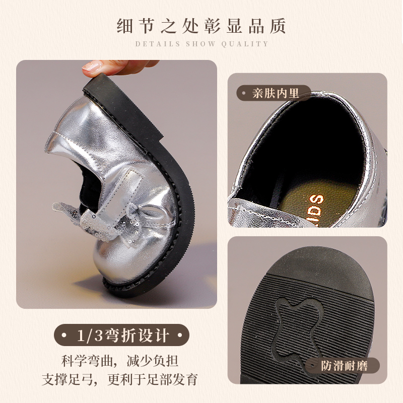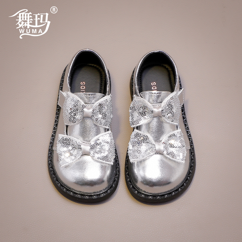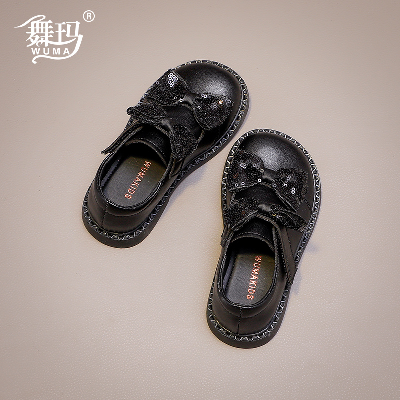 小女孩蝴蝶结软底黑色公主鞋 舞玛女童鞋 春秋季 2025新款 子儿童皮鞋