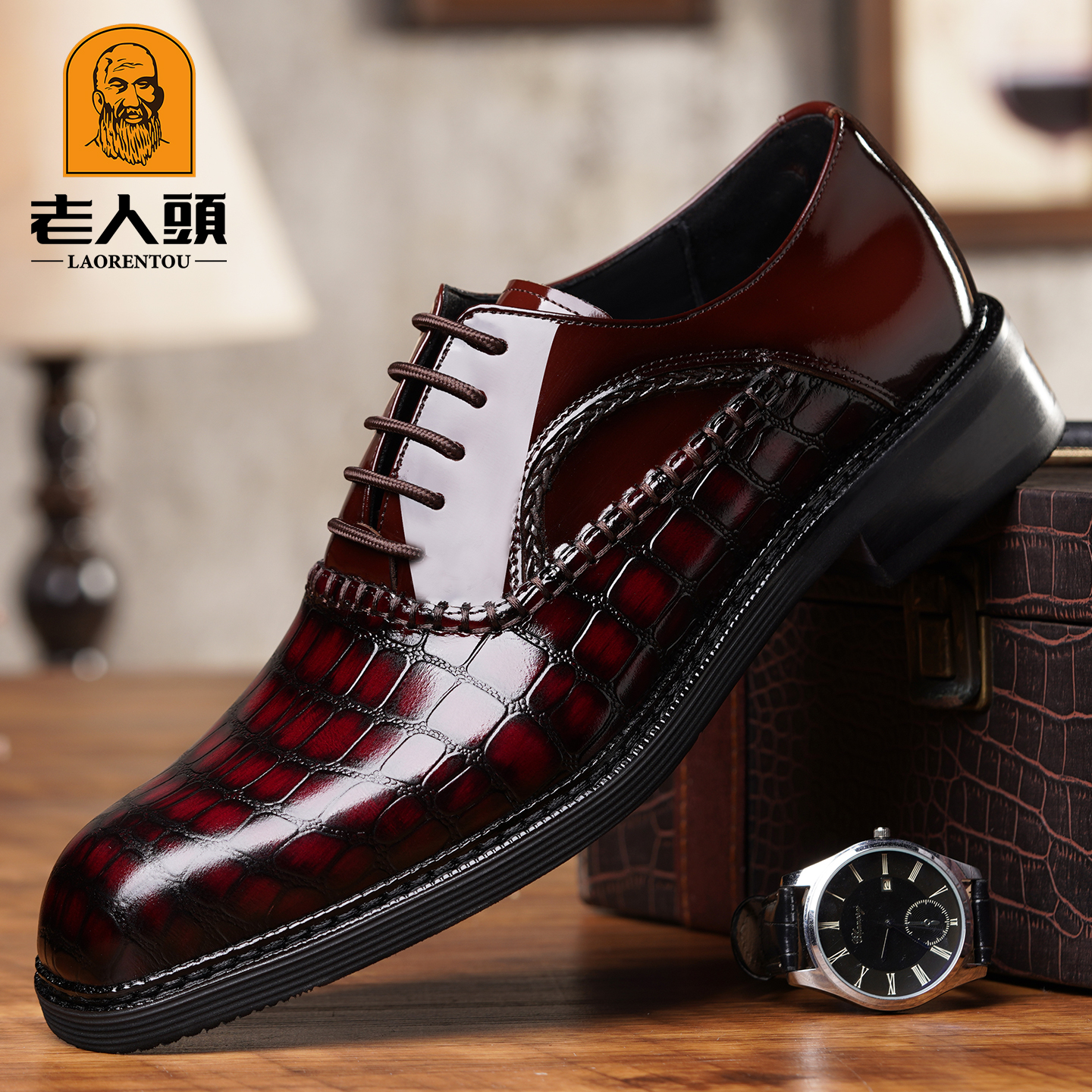 新款 亮面布洛克婚鞋 英伦正装 男真牛皮压花商务皮鞋 皮鞋 老人头秋季
