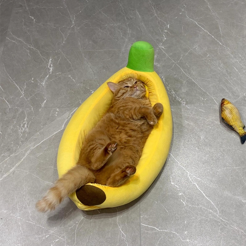 狗窝香蕉船秋冬保暖猫窝可拆洗宠物中小型犬柯基博美睡垫猫狗垫子